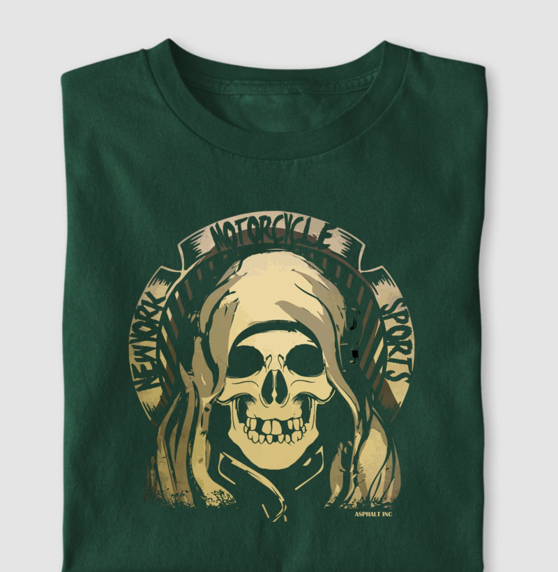 A Camiseta Skull Motorcycle da Asphalt Inc é feita para motociclistas e apaixonados pela cultura biker que vivem a estrada intensamente e carregam no peito o espírito da liberdade. O design exclusivo traz uma caveira imponente em estilo retrô, inspirada no lifestyle underground das corridas de moto, simbolizando atitude, ousadia e a força de quem encara qualquer desafio no asfalto.